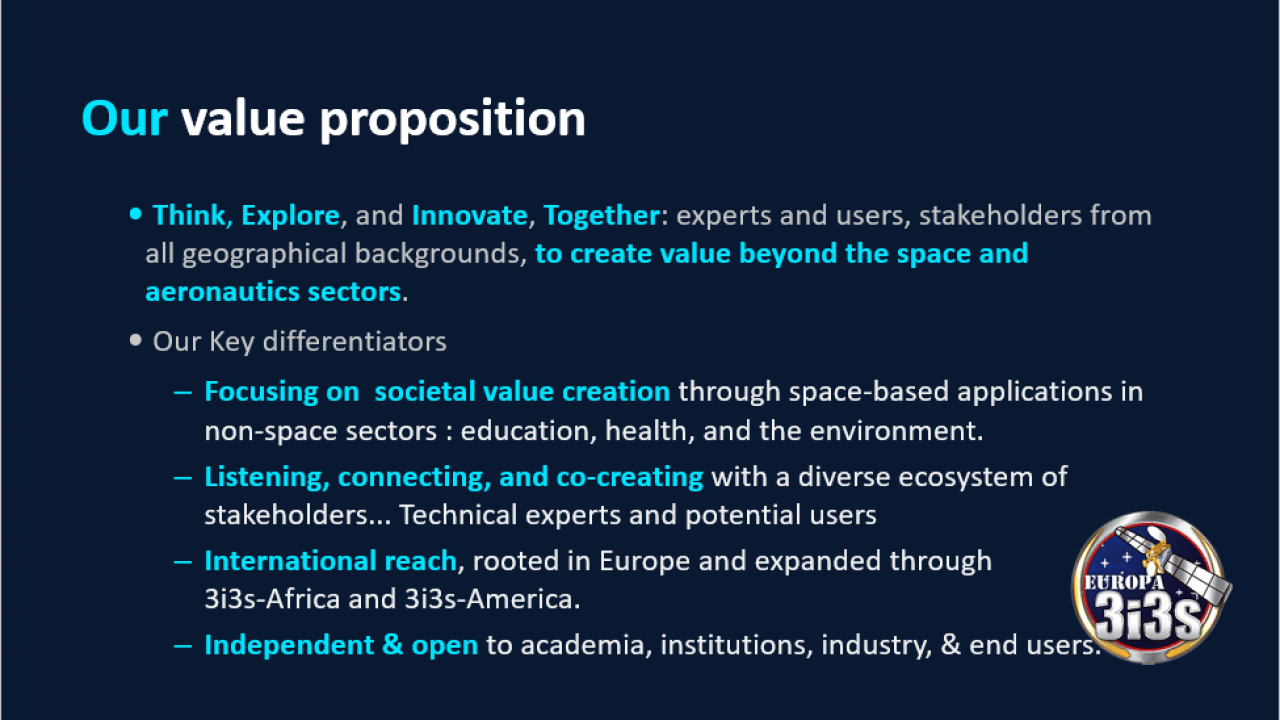 - Réunir le monde applicatif avec les experts de l’aérospatial en Europe et dans les pays partenaires pour partager les expériences et répondre ensemble aux enjeux sociétaux
